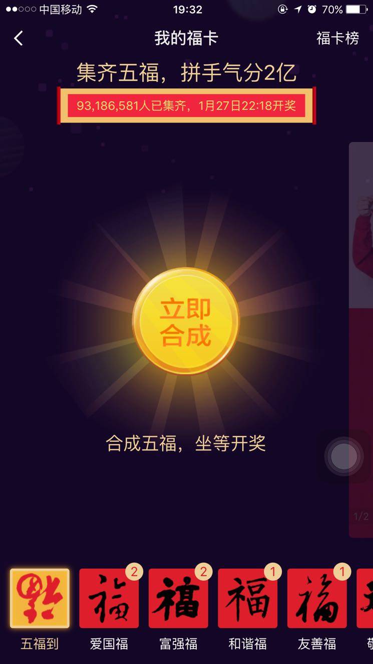 劉劉要开心l这个五福集齐了现在要不要点立即合成 我第一次弄 我也集齐了