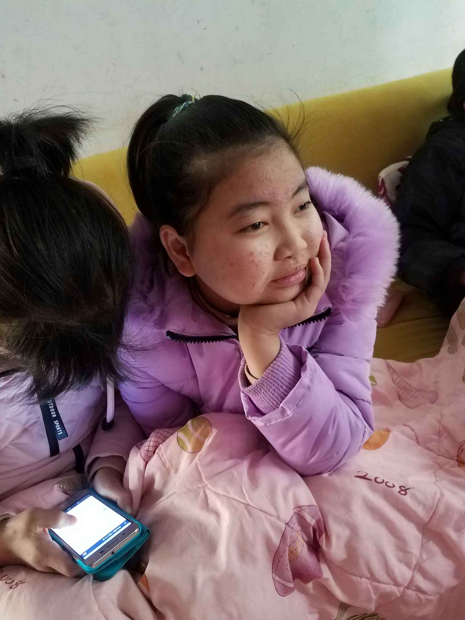 刚进门的时候是小萱萱,我根本认不出来,样子变得太厉害了,不得不说激素太强大了,因为不知道是谁,我不敢叫,后来老公叫了一声她,我都不敢相信,接着他舅舅,舅妈也进来了,我才相信她真的是小萱萱。这样我想起了公公那晚说小萱萱,说她虽然还小,但脸和我一样的大,确实,但我没想到真的这么大,而且脸上还长了很多东西。真的生病了,变了,变得没以前活泼了,估计是她自己也觉得自己变丑了,有点不好意思了。不像以前一样见我,就叫我姐姐了,也不和我拥抱了,也不主动和我说话了,现在是我问什么就应什么了。记得以前每次见她,她都叫我姐姐,姐姐的,然后来抱着我,粘着我。