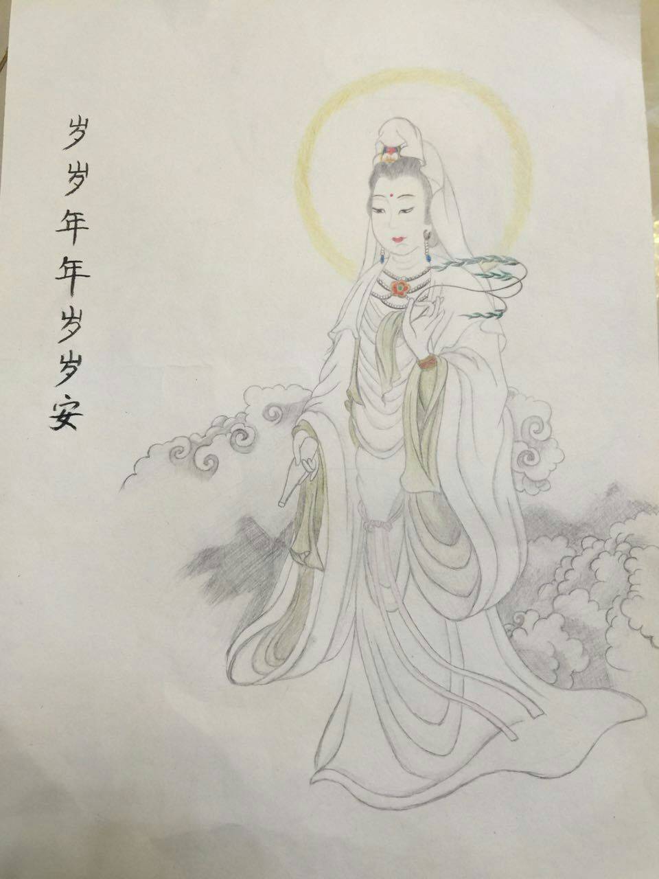 观音是自己画的。哈哈