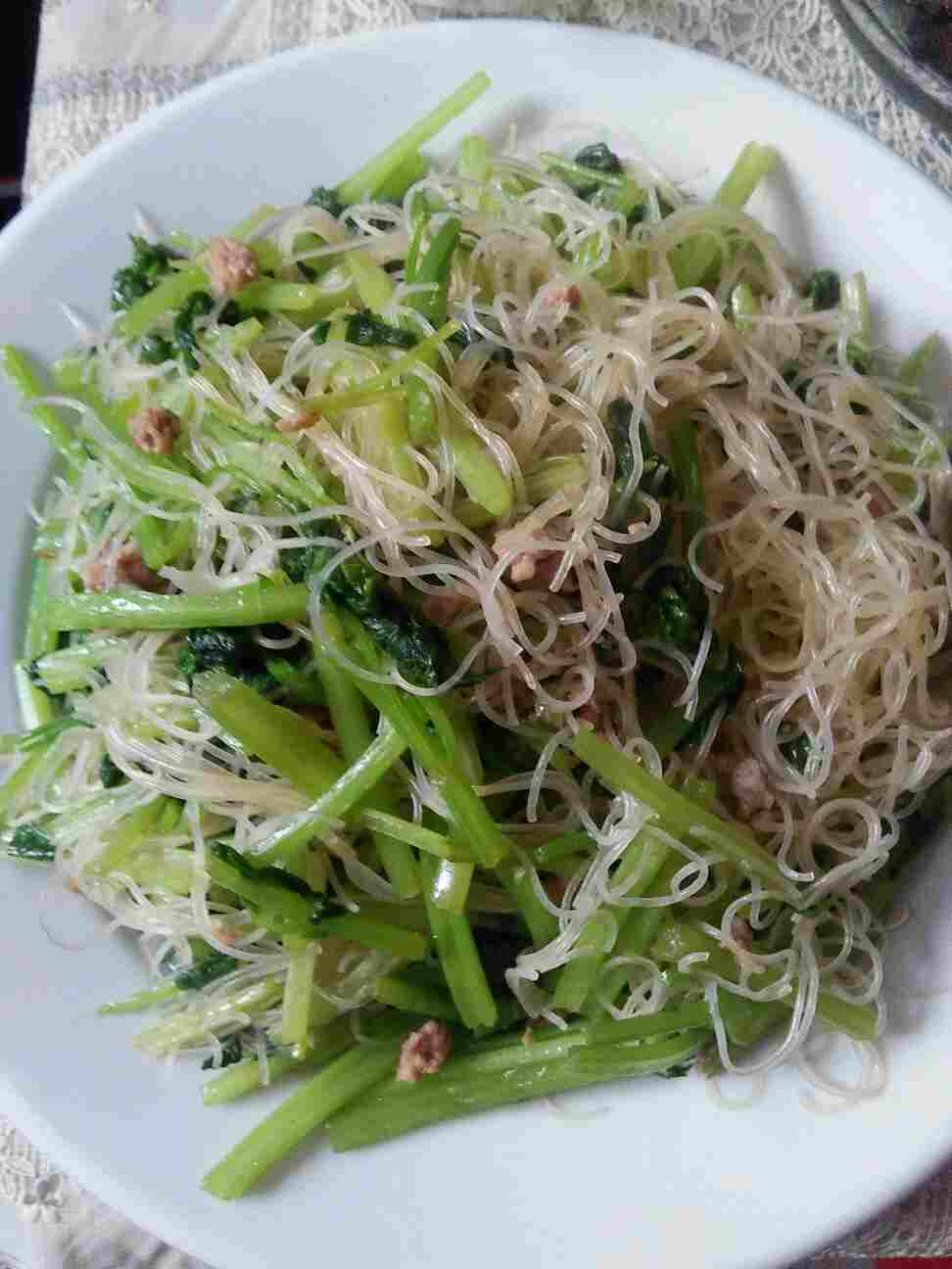,没有时间做饭。今天上午消闲了一下,做了一个肉沫芹菜粉丝,一个素烧小白菜,一个煎带鱼(我和女儿最爱吃的),一个道口烧鸡(别人送的),一个玉米窝头。先生做好饭后带饭到单位吃,春节也不能休息,挺辛苦的。