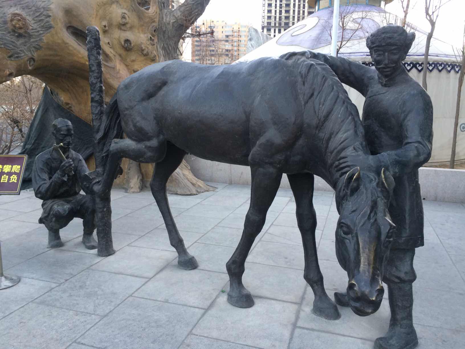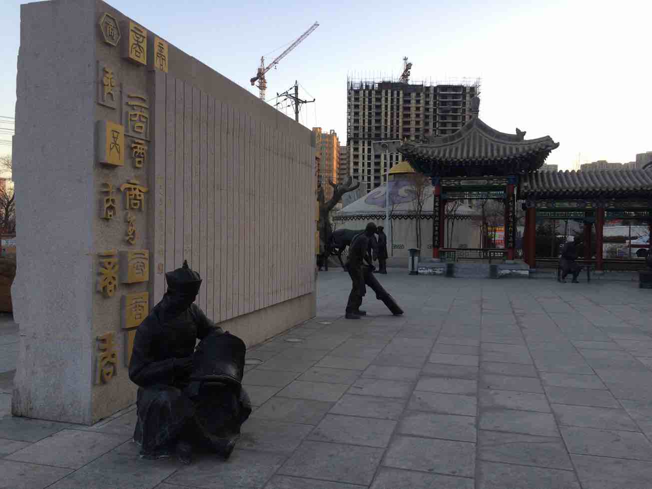 中午来大姑姐家拜年,下午出来走走,无意间看到晋商文化广场,精益的雕塑,古朴的建筑,熟悉的故事,为我们展示了走西口的情景,再现了当时的山西人背井离乡以及勤劳和智慧。因为父亲是山西人,走西口来到内蒙古,从小听父亲讲着走西口的故事长大,感觉既熟悉又亲切。