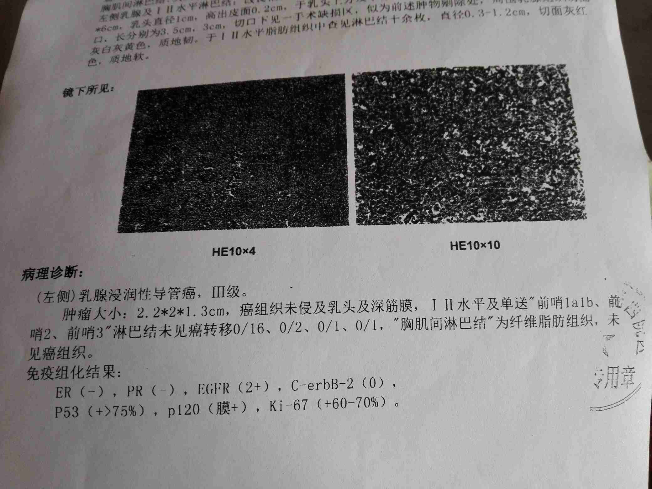 三阴。化疗。淋巴没有转移是好现象。安心治疗。治疗结束后可以吃点中药。注意锻炼、休息、饮食。我只懂这些。不要太过于担心。