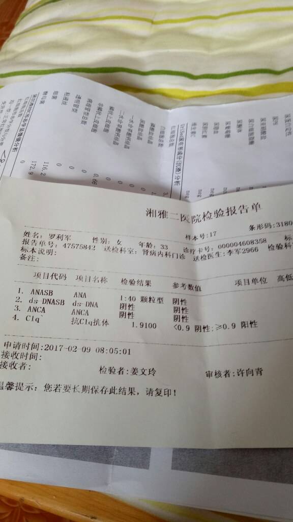 昨天医院里面的检查结果 前本来蛋白尿已转阴两个月 前今天感冒发高烧 好几天才好 又有蛋白尿了 这个抗体看不懂呢