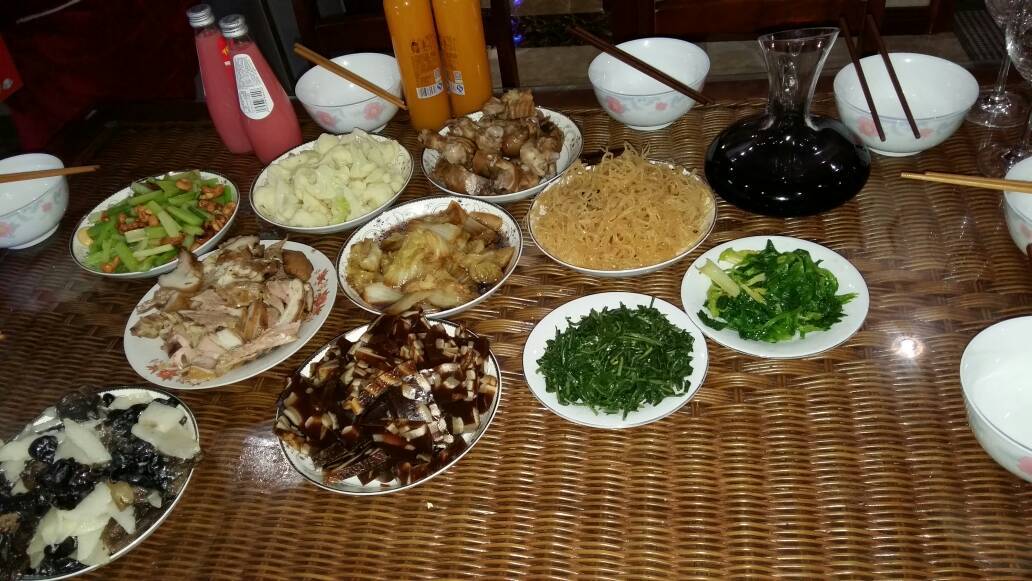 丰盛的晚餐。元宵节快乐!