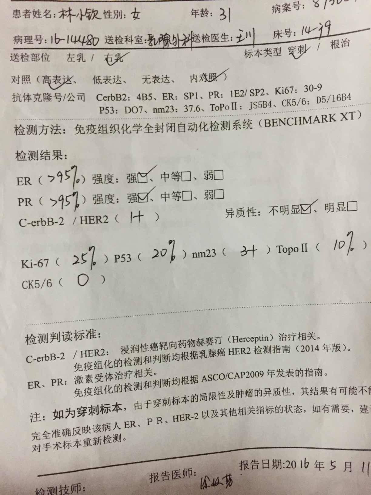 我ER,pR和你一样,不过我还没有手术,你也在协和,你在王川组,我在林主任组