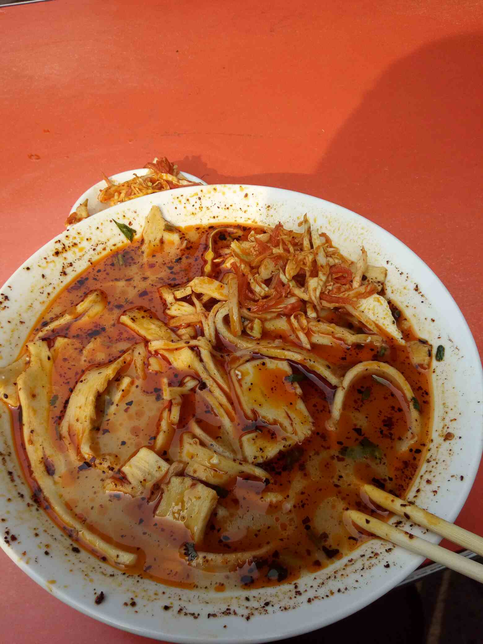 大家都没猜对,是豆花泡馍!你们没吃过吧!看着辣子很多,但不辣,我也很少吃辣椒的!