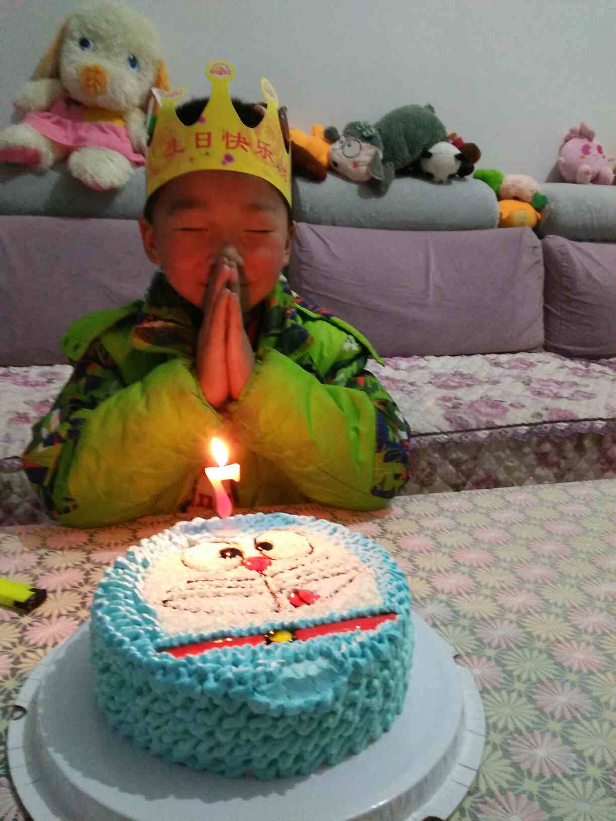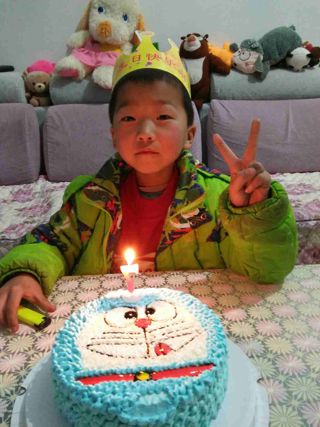 小帅哥,生日快乐!沙发上好多公仔啊