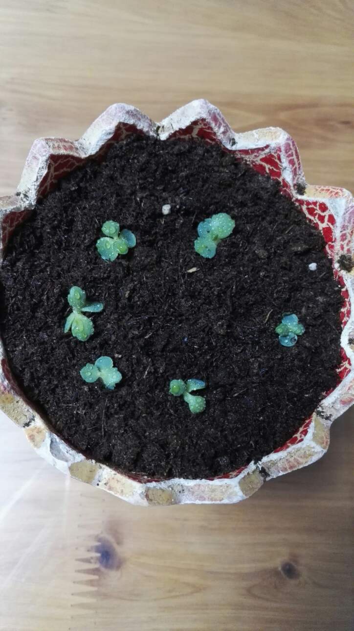 在朋友那儿弄了几株落地生根的幼苗(如图一),希望它在我家几个月或一年后长得枝繁叶茂(如图二)。