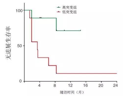 而癌细胞高突变的患者一般来讲疗效更好一些。一项利用pembrolizumab治疗非小细胞肺癌患者的临床试验表明:癌细胞高突变的患者组客观缓解率更高,达到63%(低突变组0%);无进展生存时间更长,中位无进展生存时间为14.5个月(低突变组3.7个月)。研究者同时指出,在基因检测过程中能够发现患者吸烟的痕迹(癌细胞高突变)。吸烟痕迹明显的患者客观缓解率达到56%,研究未达到中位无进展生存时间,而这种吸烟痕迹不明显的患者仅有17%的客观缓解率,中位无进展生存时间3.5个月。