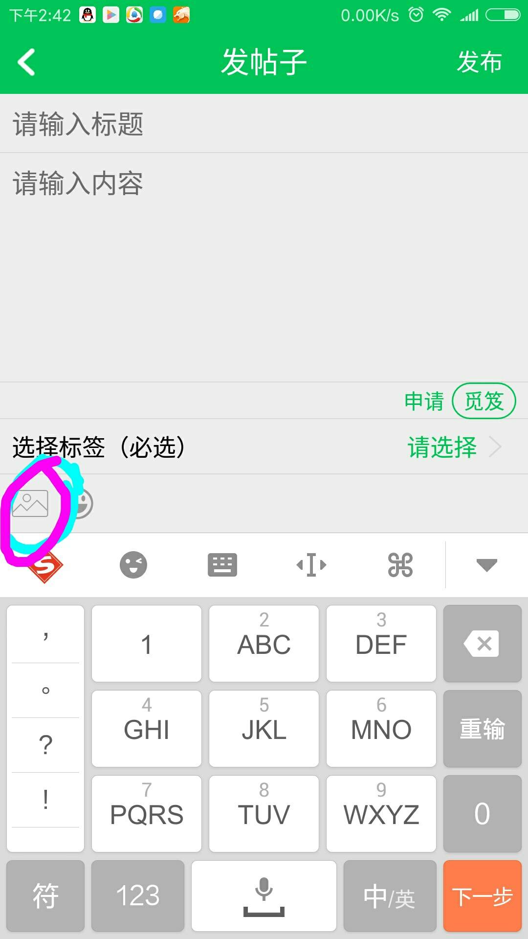 发帖的时候能看到标记的那个地方吗,点那里,再点+就行了