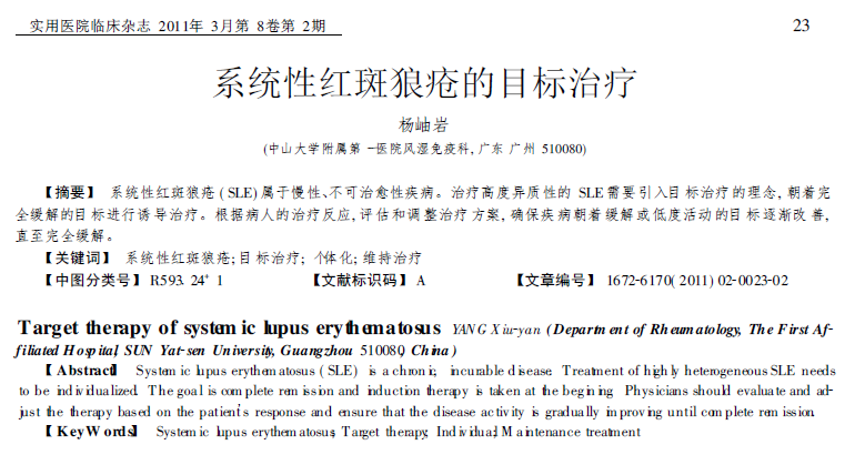 杨岫岩:系统性红斑狼疮的目标治疗