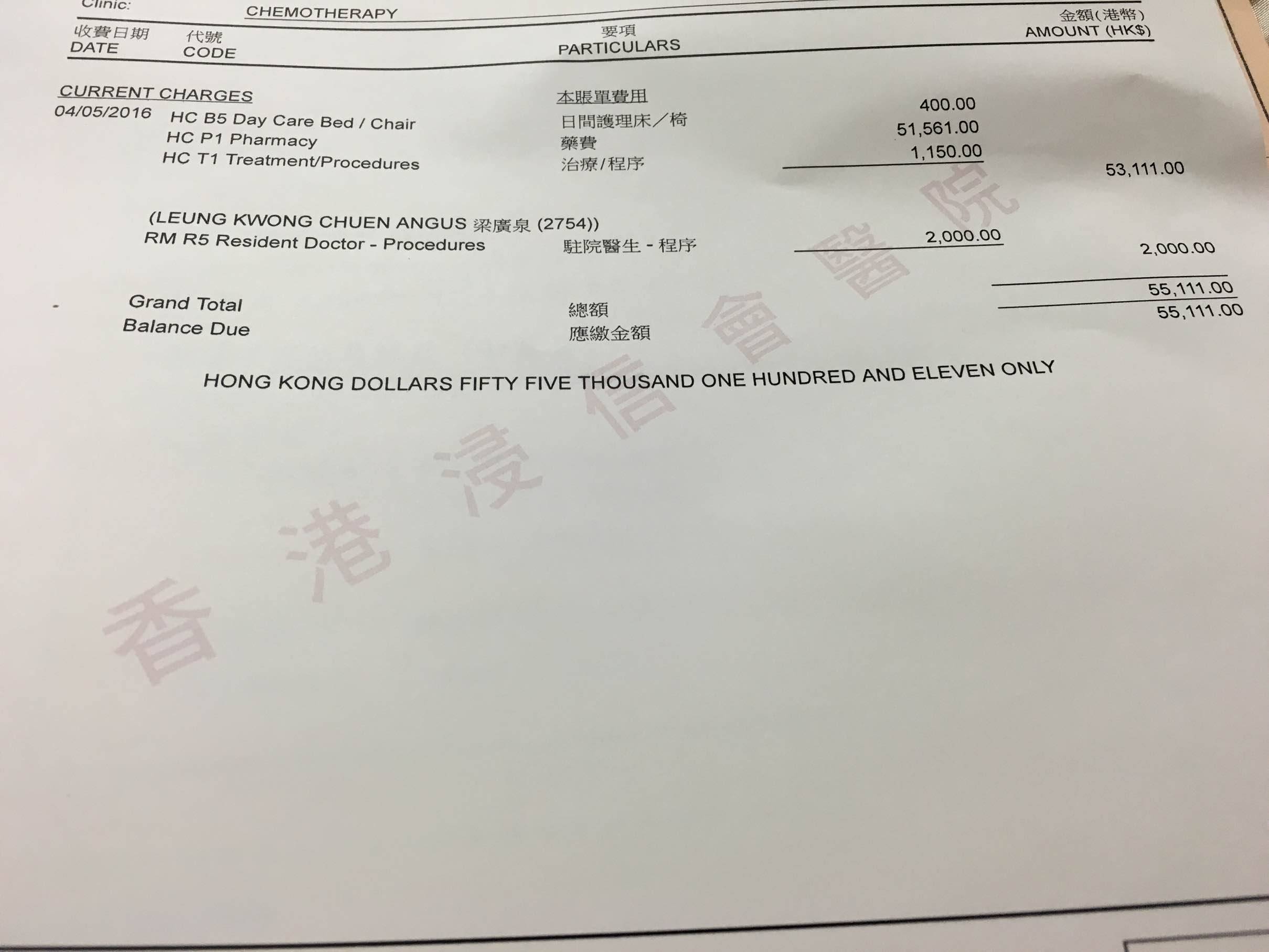药费51561港币,其它的费用还算好啦,毕竟是排名前几位的私立医院!只是当天往返还是挺辛苦的