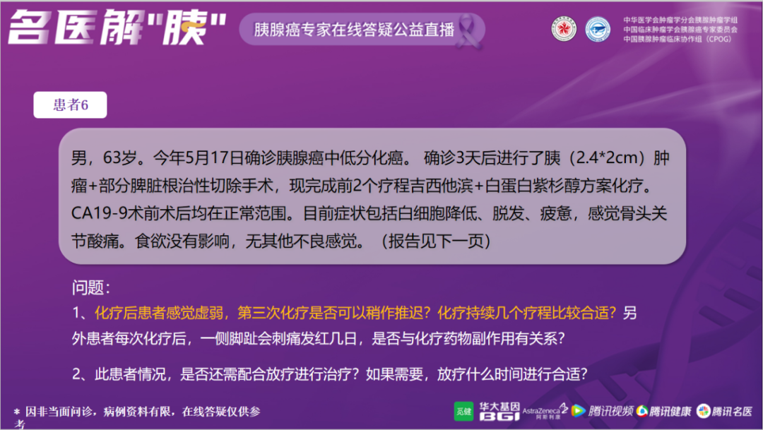 在今天的直播干货整理中,关爱君总结了关于胰腺癌最普遍的治疗方式“化疗”的知识点归纳。尽管患者及家属们对化疗一定都不陌生,但是随着治疗的深入,求医者们还是会有各种各样新的问题出现。今天这期我们就听专家是如何叮嘱我们胰腺癌化疗的注意事项。