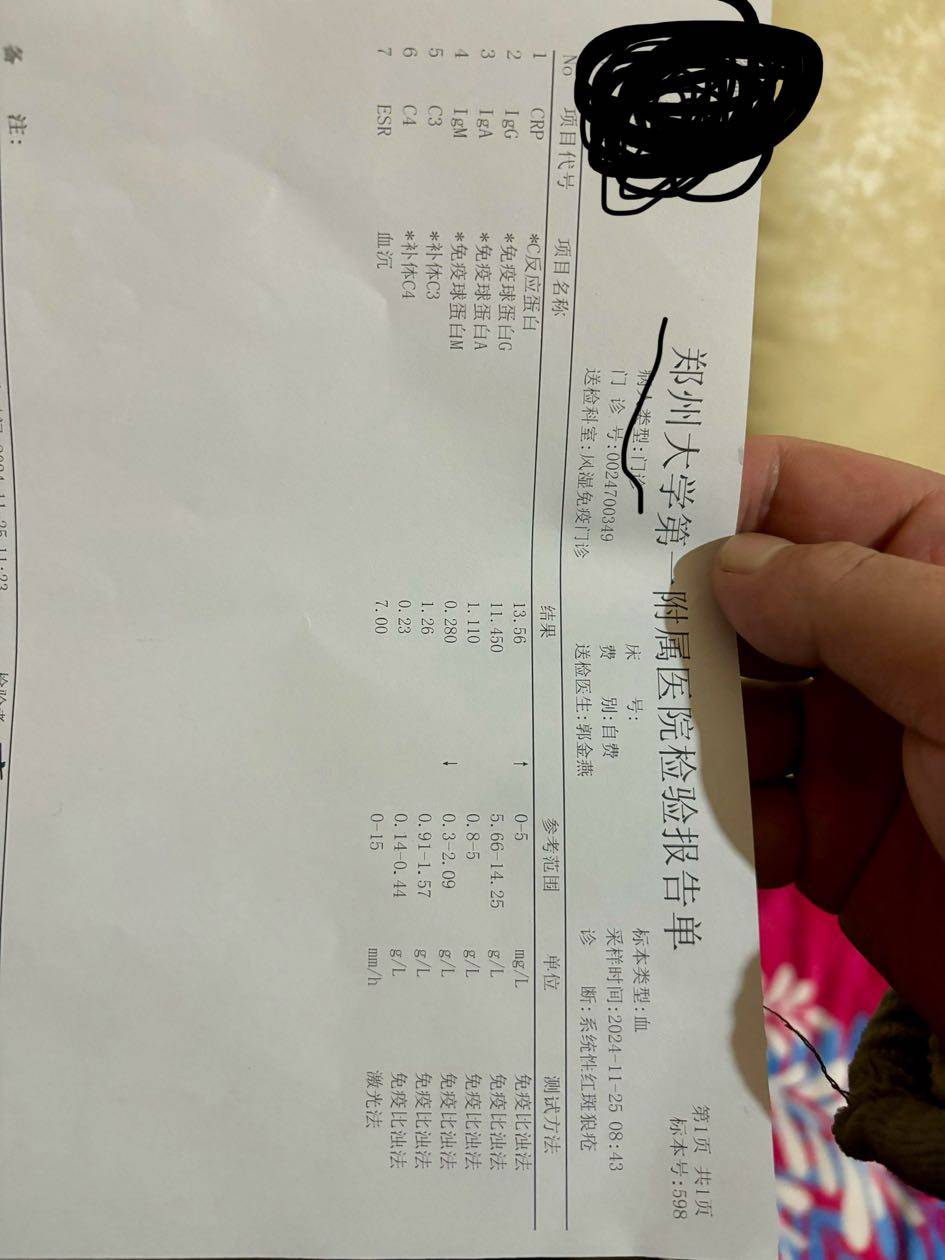 今年5.16在郑大一附院开始打泰它西普,一周两针,一个月4次,刚开始打补体C3 0.63 C4 0.01 尿蛋白3+