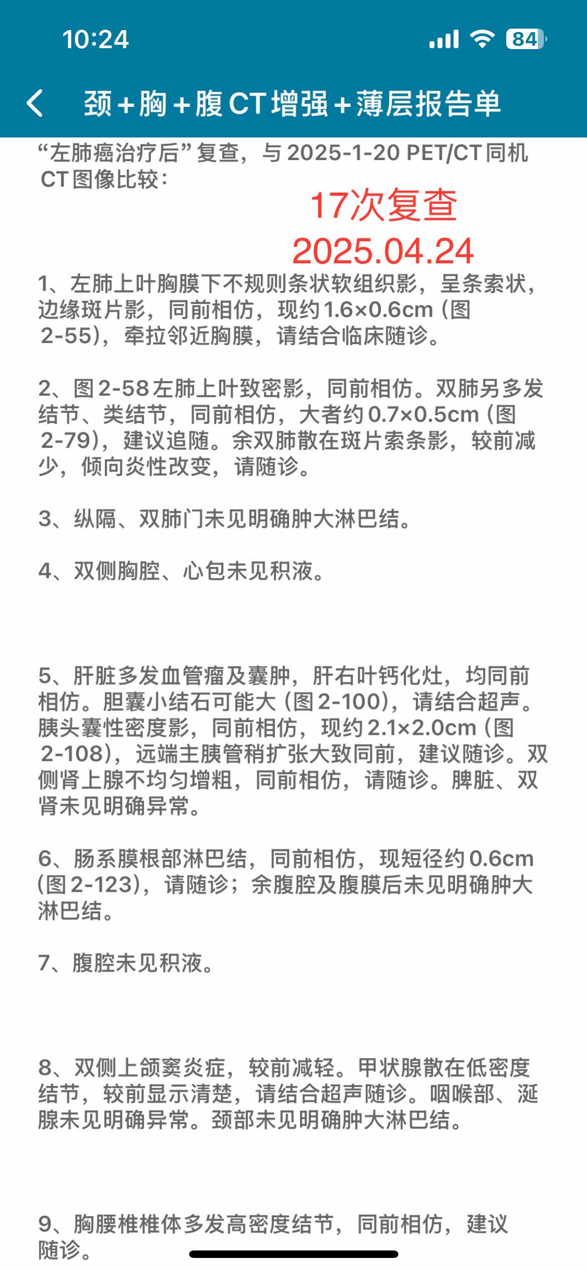 Ct报告复制粘贴,均同前相仿,但是NSE突然翻倍,老曲的NSE一直是上下波动,但是第一次到30。准备下个月中做脑部核磁的时候再顺便测一下肿标。