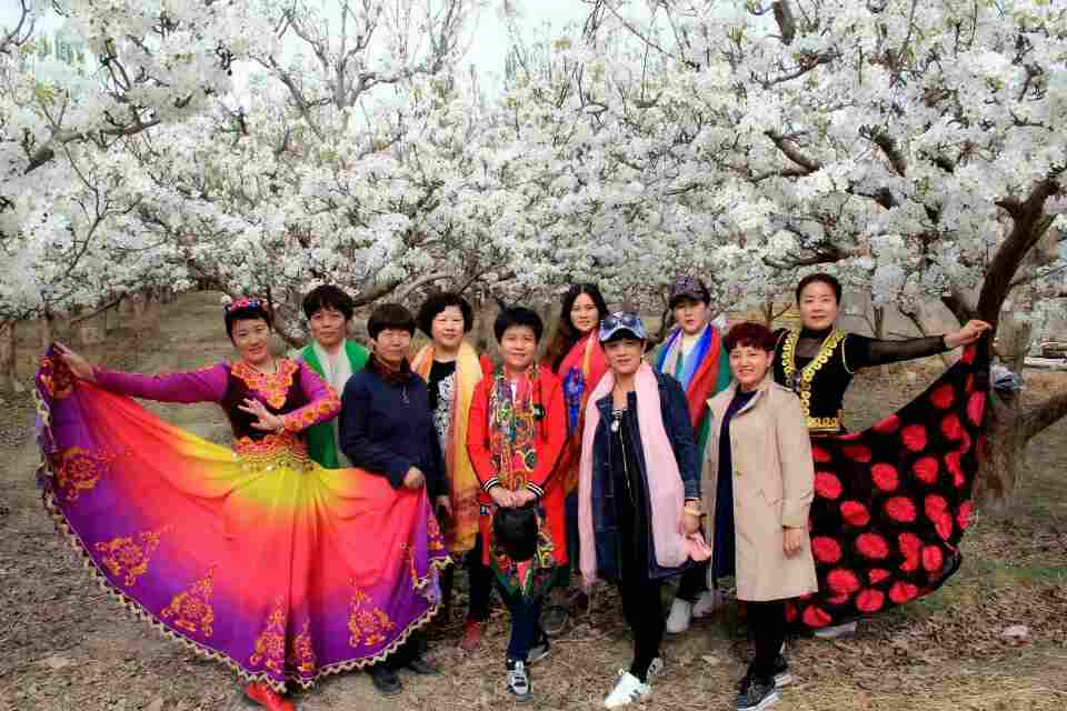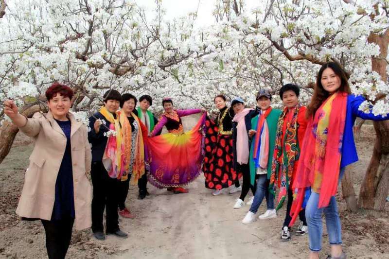 十里桃园中美女们若艳丽的孔雀般翩翩起舞