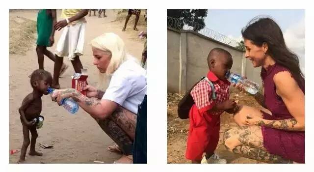 照片里的女人叫Anja,是非洲儿童援助教育发展基金会的成员,她正在给一个虚弱饥饿裸体的小男孩喂食物和水,这个小男孩——后来被大家称为Hope(希望)。右边这张图上的男孩儿,就是长大后的Hope。