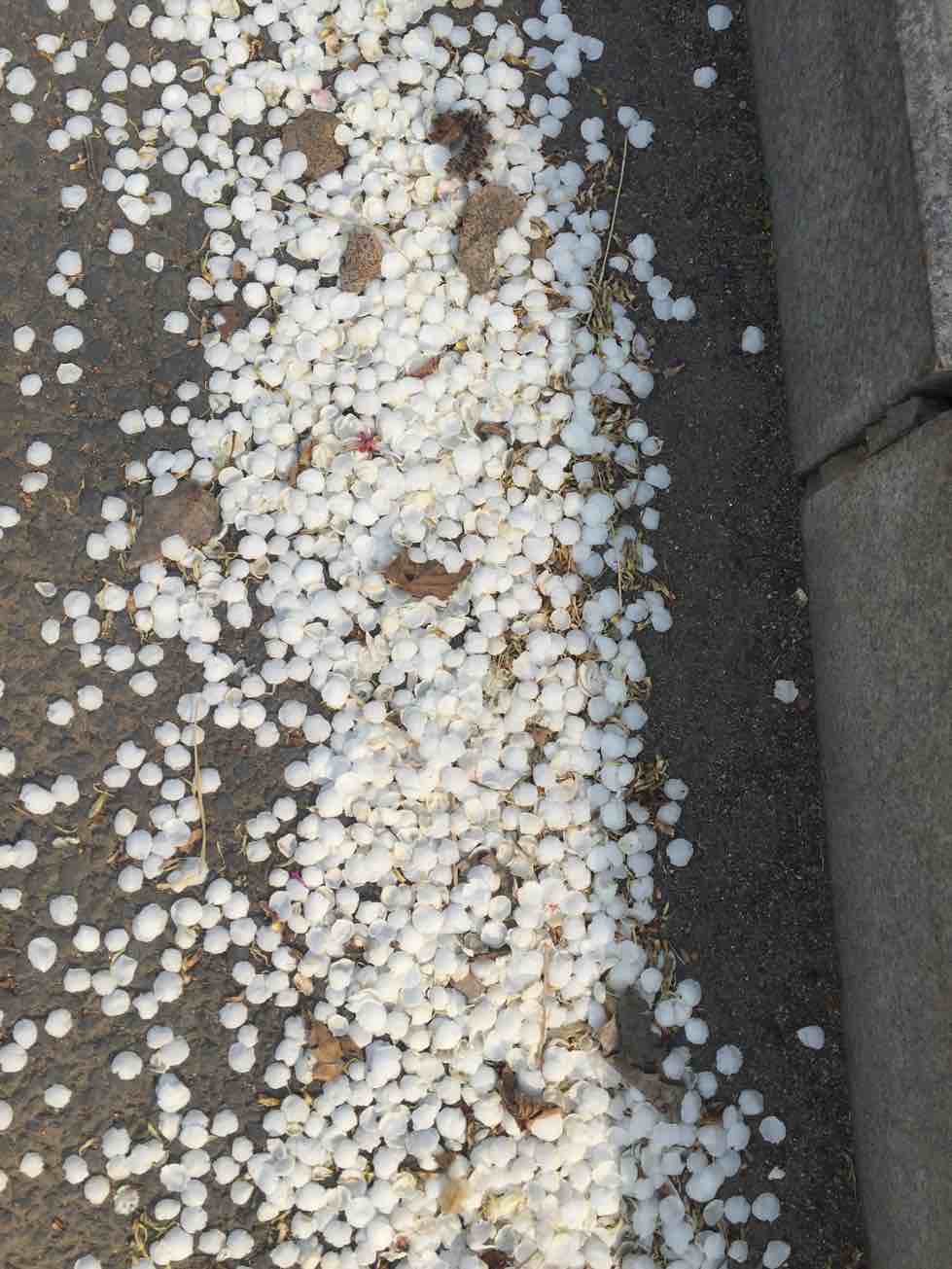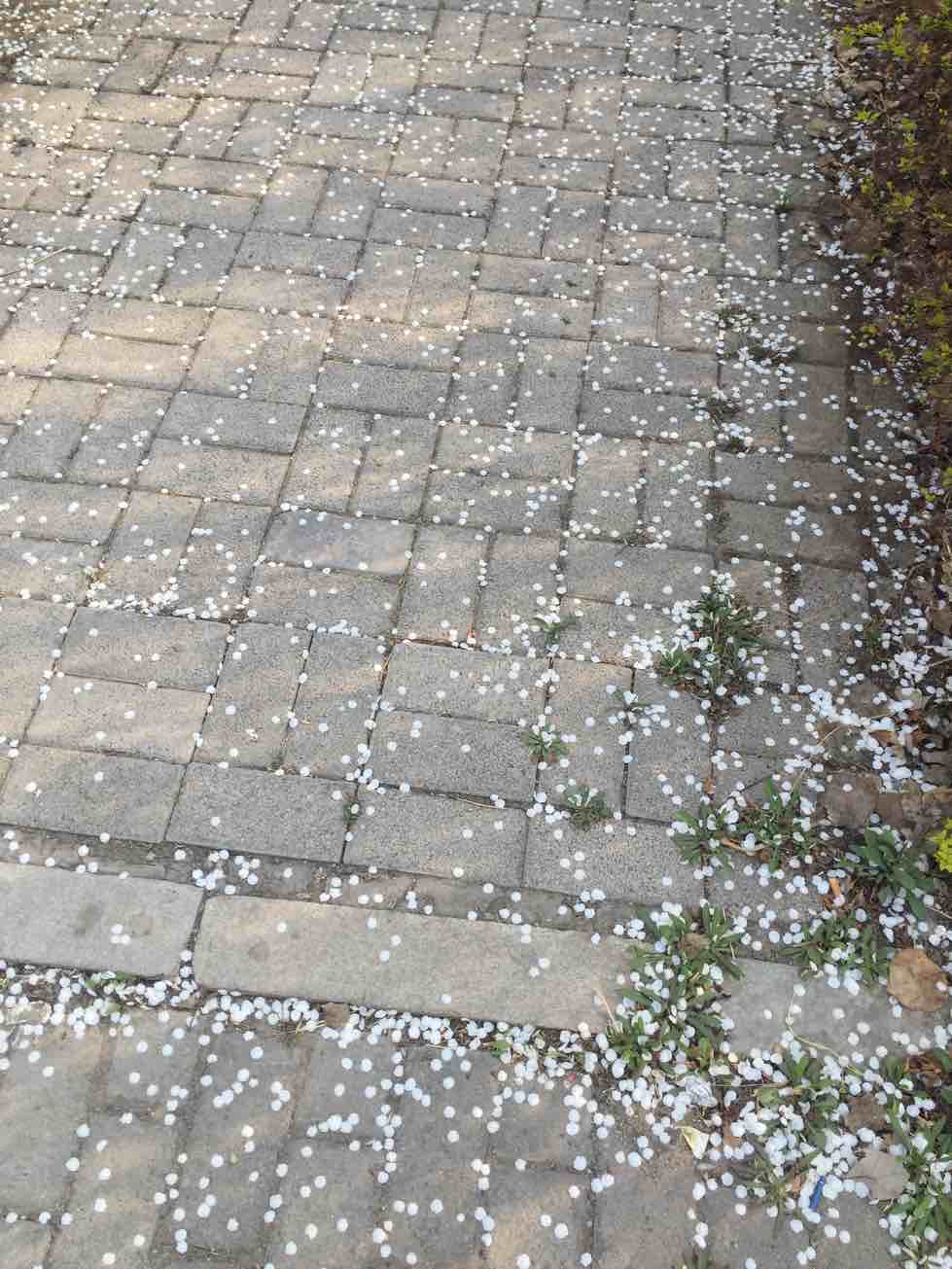 出去晒太阳、发现杏花开败了、遍地都是、花朵分散开来、一瓣瓣的象杏仁。可能你们早知道、对我来说却是重大发现。从不曾留意过、风把落花聚拢在一起、层层叠叠、或疏落有致。