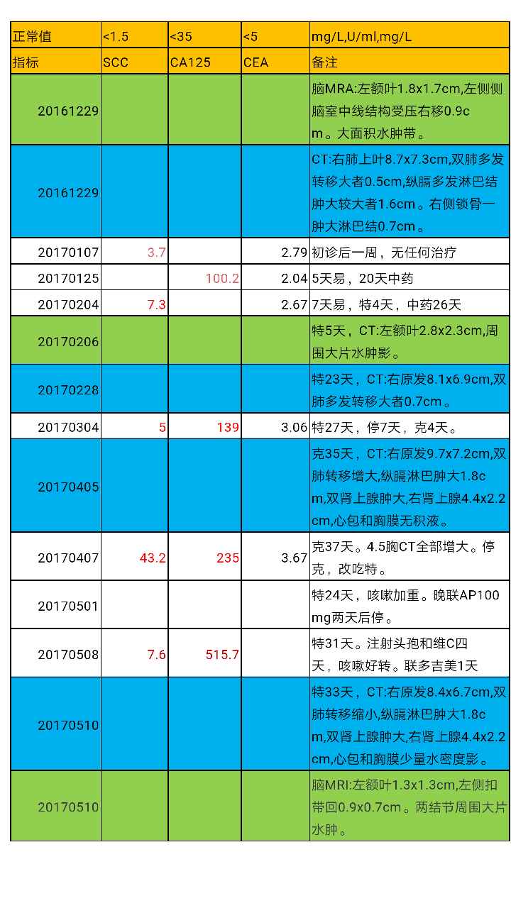 5月8日肿标:scc7.6(4月43.2),ca125/515.7(4月235.1)。