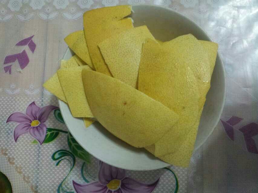 原材料:柚子(最好乡下树上的。尽量选黄色的,做好后不会太苦) 冰糖 方法:1柚子皮去掉白色的瓤 ,只留黄色的外皮,切成丝或丁,越细约好 2 柚子肉把外皮去干净,撕碎。 3先把切碎的柚子皮加水放入锅内煮半小时后,再倒入柚子肉和冰糖,转小火熬3小时左右。 注意事项:冰糖要大块的敲碎多放点。熬的过程中多搅动,防止糖多粘锅。土豪可以用蜂蜜代替冰糖。 味道有点甜中带一点苦,可以直接食用,也可以适量柚子茶加入蜂蜜加温开水喝。可以润肺止咳。效果很好