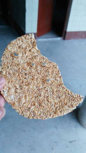 好多芝麻,薄薄的,很好吃的样子,感觉盒子很高级😁