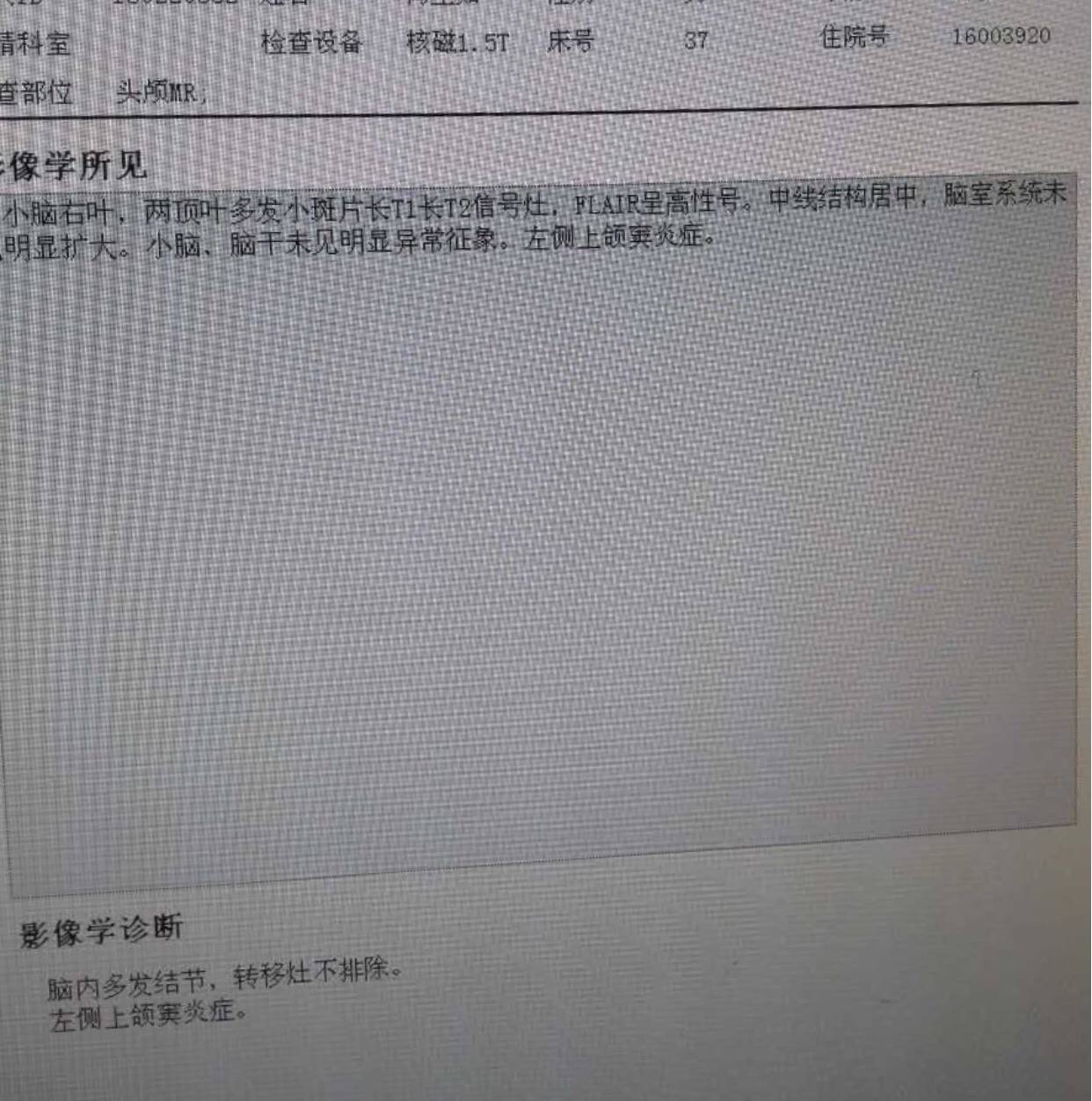 是脑转初期,多发小斑片就是。用804、3759、9291(120mg可入脑)