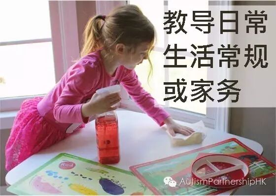 建立和教导日常生活常规或家务:孩子越来越大,教学范围亦不再局限于游戏技巧,家长也可考虑教导孩子一些适龄的家务,例如:准备晚饭常规﹝于晚饭时间前在饭桌上为每人放置一套餐具﹞,亦是一个不错的选择。