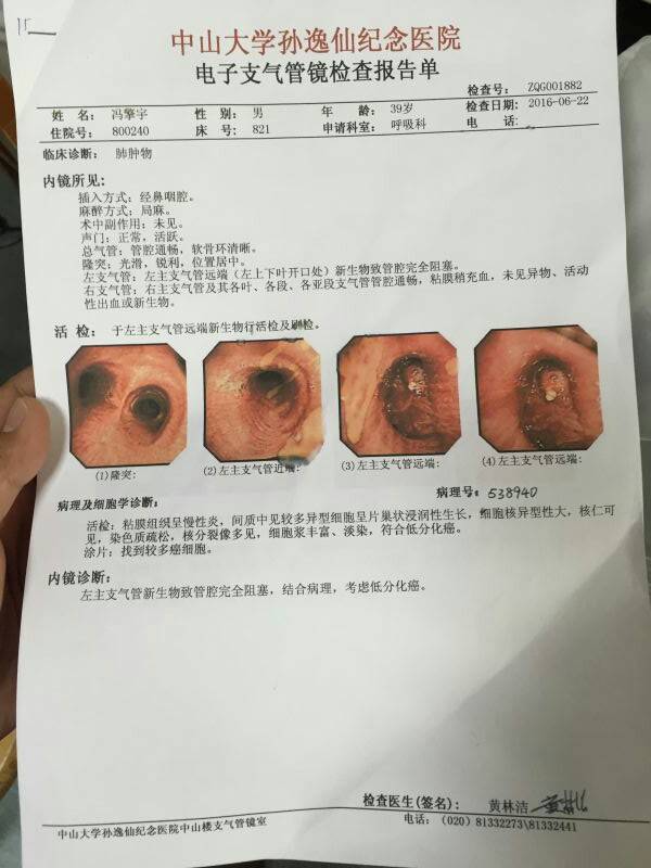 我抱着最后一线希望跟着我一个兄弟来到香港,见一位专科医生。初步查了一下马上要我进医院跟我说有没有其他想法和问题!说白了就是说我现在已经很严重了必须要先查出癌的各种信息!我只能听重安排进了一家私家医院!我不得不佩服资本主义的办事效率!第四天我一大早出院了!到了我的主诊医生那里听我相信的情况!