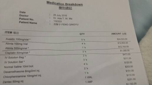 非小细胞肺腺癌!已经淋巴转移多方面!没脑转!各个器官还没受到伤害!基因没有突变用不了口服和药服的标靶药!我听了人都凉了一大半!就答了一句!那还有多久老实告诉我医生!那医生说你不要悲观我已经有治疗你的方案了!我对你的病很信心治好你!我追问有几成机会?他给了一个坚定有九成!我开始怀疑了!国内的说我没医你说九成这。。。。我半信半疑!那边没得医这边说有得医用得试试啊!我接受他最进取的一个医疗方案!avastin alimta cisplatin 这三种进行化疗化疗当天就进行!胸口拳头大的毒瘤进行10次放疗!也同时进行!这医生够狠4天就给我大搞了!这四天花了我好几十万港币!但还是搞了!我担心会不会给骗了!马上找回国内那个医生要求他们帮我把基因突变所有东西都要帮我检验!我要自己暗暗对比有没受骗!治疗进行中!人家都说化疗副作用很大!但我除了出一点红疹就没什么!咳嗽少了!咳血也好像少了!之前呼吸像漏气的感觉没了!就是人有点累!一个星期验血报告出来癌胚抗原13.7其他还算正常!国内的病理报告出来了一份!我朋友帮我去取!结果就一个!说我确实是癌症!我晕死这我早知道啦!我的基因突变报告呢?什么种类癌呢?对方答复!要等。。。又等了一个星期左右我盼望已久的出来了!没突变。与这边的一样。我打给广州的医生现在所有东西齐了请求大医生给我个治疗方案!得到的回答让我哭笑不得!要我回去住院!等专家会诊才有进一步治疗方案!我的天!直到昨天我第一化疗完成!我胸口的淋巴瘤由拳头大的!现在都已经坏死了!癌胚抗原跌到不到10了!病灶缩小了!效果明显好转!我就毫不犹豫进行了第二次化疗了!希望继续好下去!