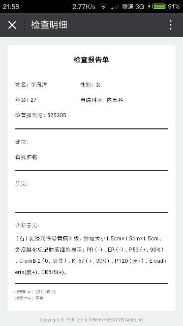 我的病理报告和你几乎差不多,肿物大小也几乎一样,在上海肿瘤医院治疗的我也可以保乳的,但是当时选择了全切,现在感觉有点后悔全切了,患侧总归不舒服的。