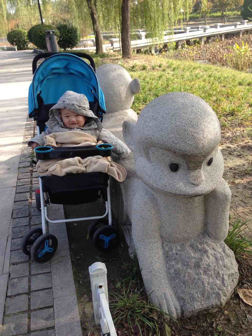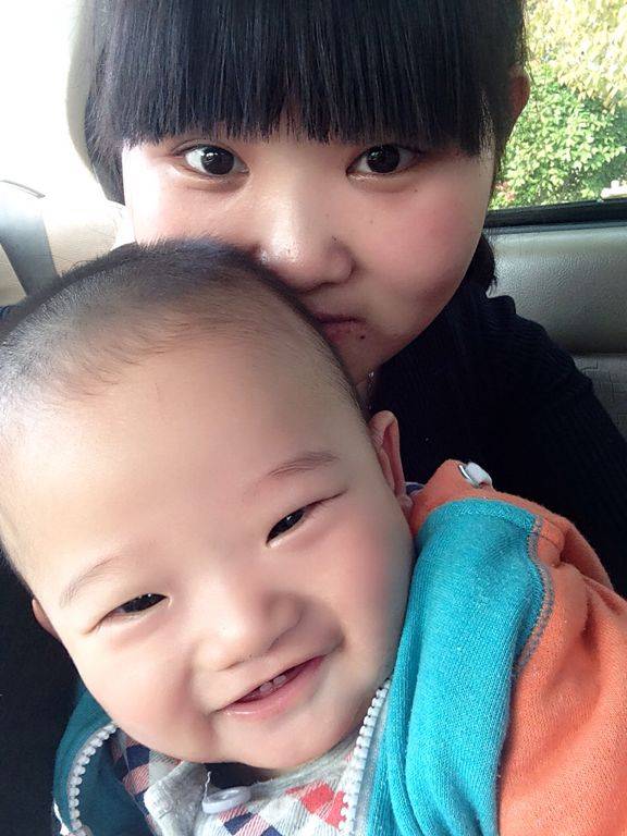 真是小孩可爱,妈妈年轻漂亮啊!