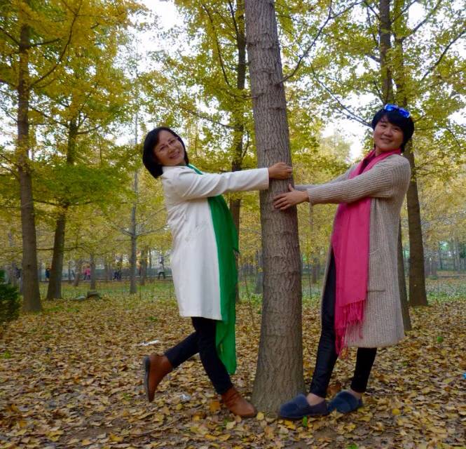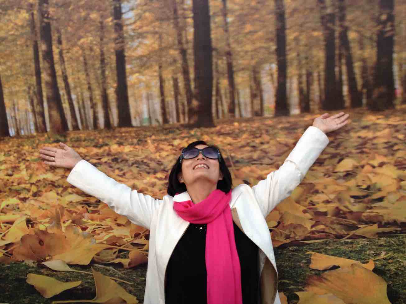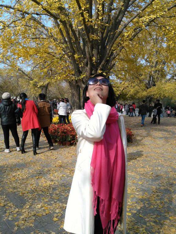 好美的银杏叶!开心快乐的美人!