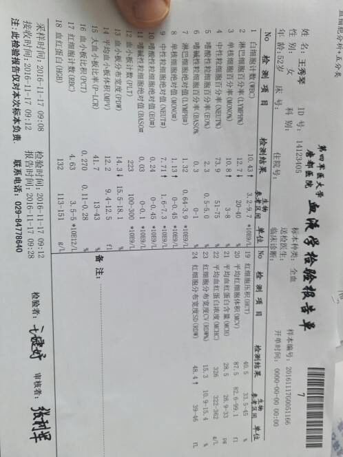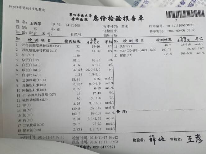 凯美纳服用七个月后,咳嗽缓解后,最近出现颈椎僵硬带动头疼,头颅核磁没有出现考虑转移瘤,颈胸段核磁出现胸1,2及颈椎枕骨斜坡出现代谢异常。然后住进来,大夫说疼痛没有办法,只能用一些常规治疗药物,配合最近做的局部骨骼放疗看看能否减轻疼痛。。血液啥的的检测结果如下图,请问大家,这该怎么办,基因检测只能再做气管镜取活检?还是穿刺取活检?有一个叫Ebus的,医生为啥不给开,那个是不是好一些。求教病友!!