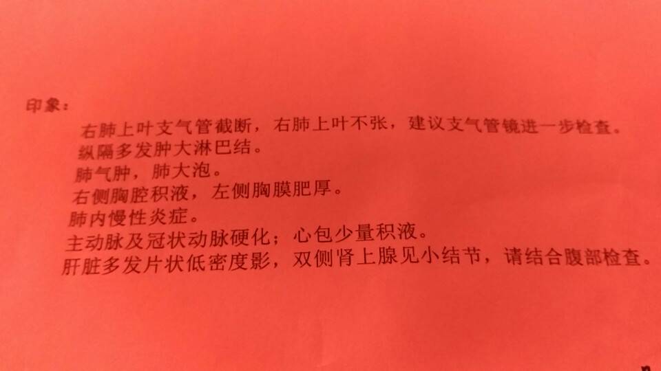 周一查出来的,现在肿物压迫上肢静脉很危险,没办法做病理,肿瘤标记物和肝胆肾彩超都问题。医生说是高度怀疑小细胞肺癌晚期,因为静脉压迫非常危险。没有条件和时间做支气管镜和病理,求大家给建议和分析,我计划带着片子去北京再看看。