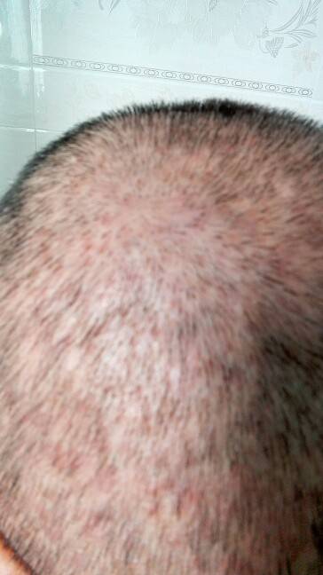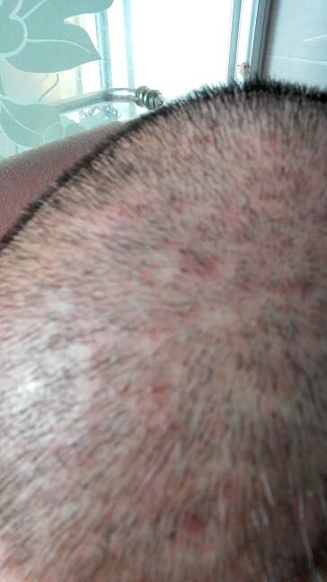 我也有过,医生说毛囊发炎,盐水洗头消炎.一个月才好的.