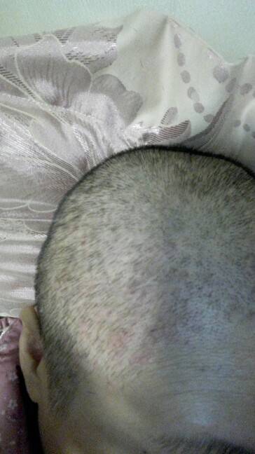 这个是化疗药物过敏,过几天就好了!不出的时候就不要戴帽子或假发