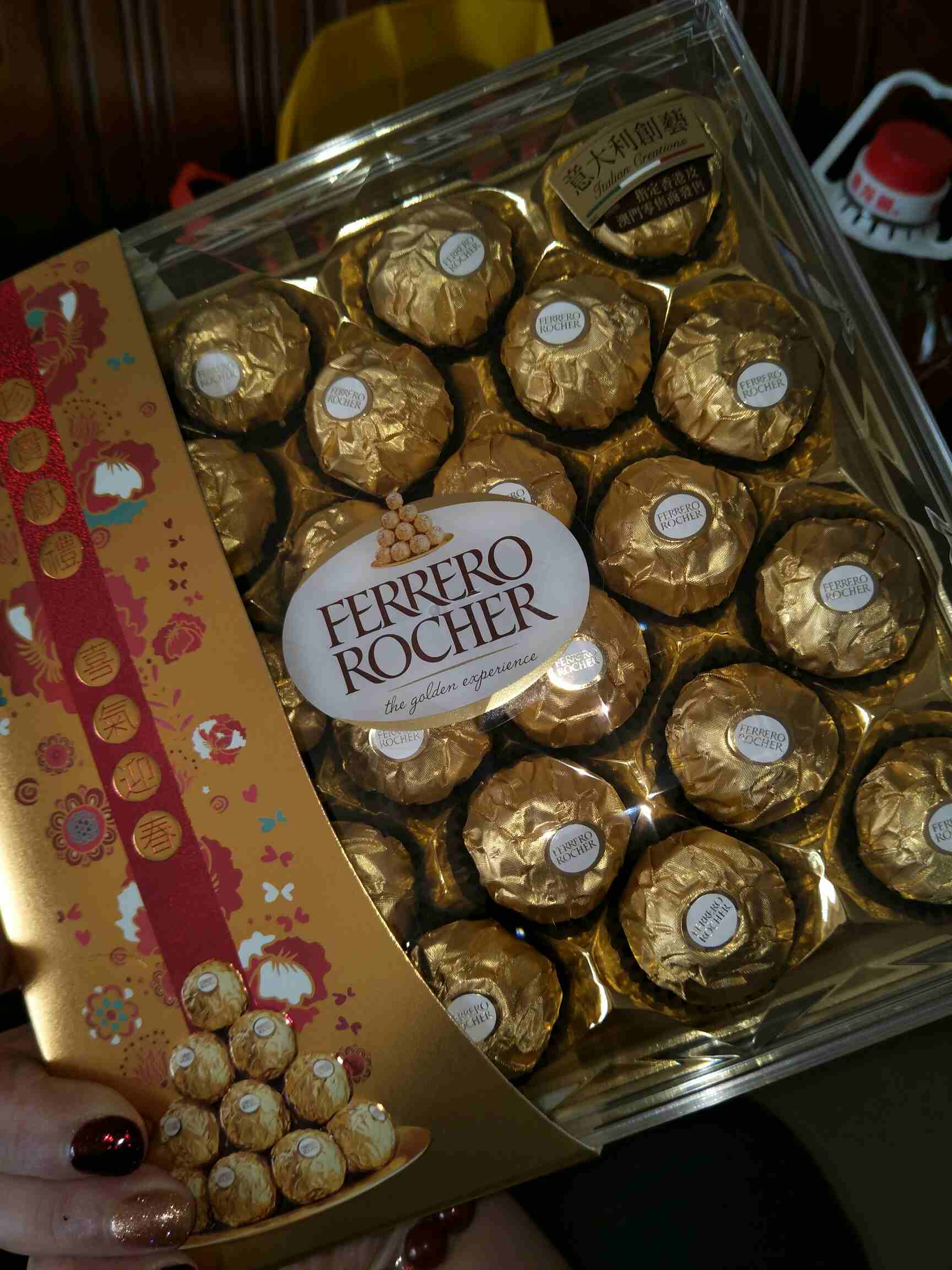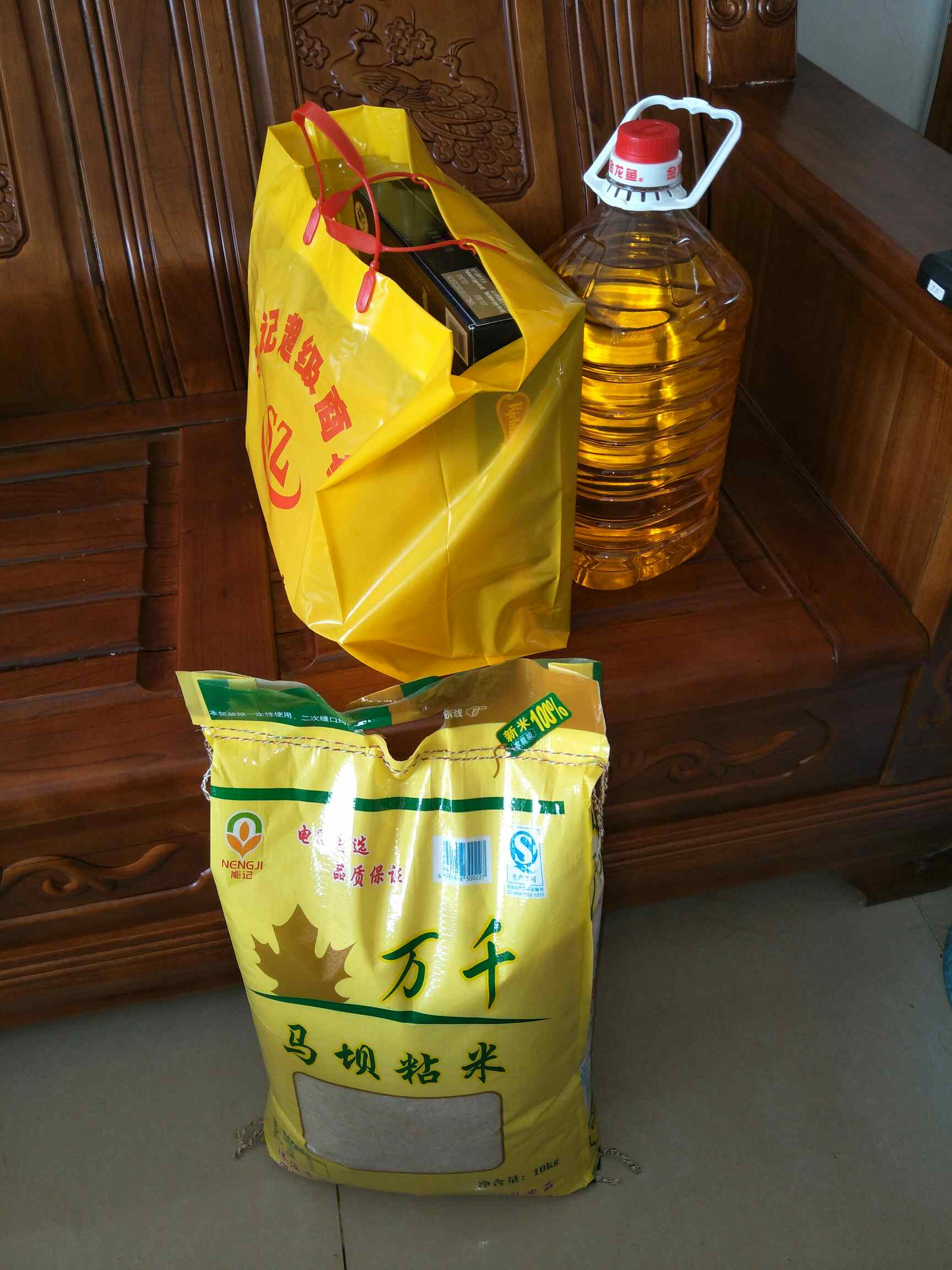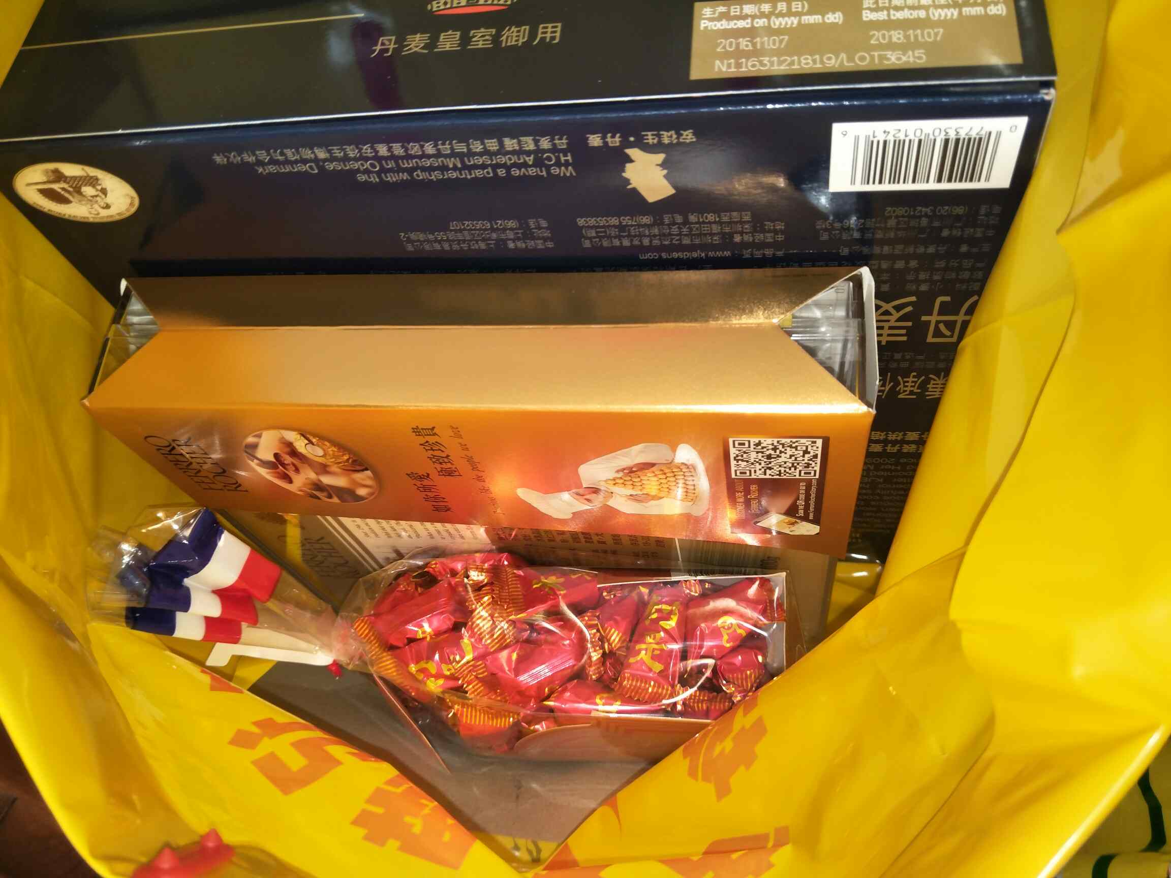 所以就一份,一罐油,一包米,一盒丹麦曲奇,一盒金莎,一包嘉顿利是糖😍😍都是正品货👏👏👏