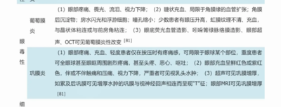 点赞(0) 举报附图是指南列出的眼睛葡葡膜炎的相关症状。