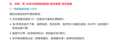 点赞(0) 举报免疫相关的眼睛毒性的标准指南建议,附图给你参考。。。。对照指南,尽快确定毒性的轻重缓急程度,对症治疗。