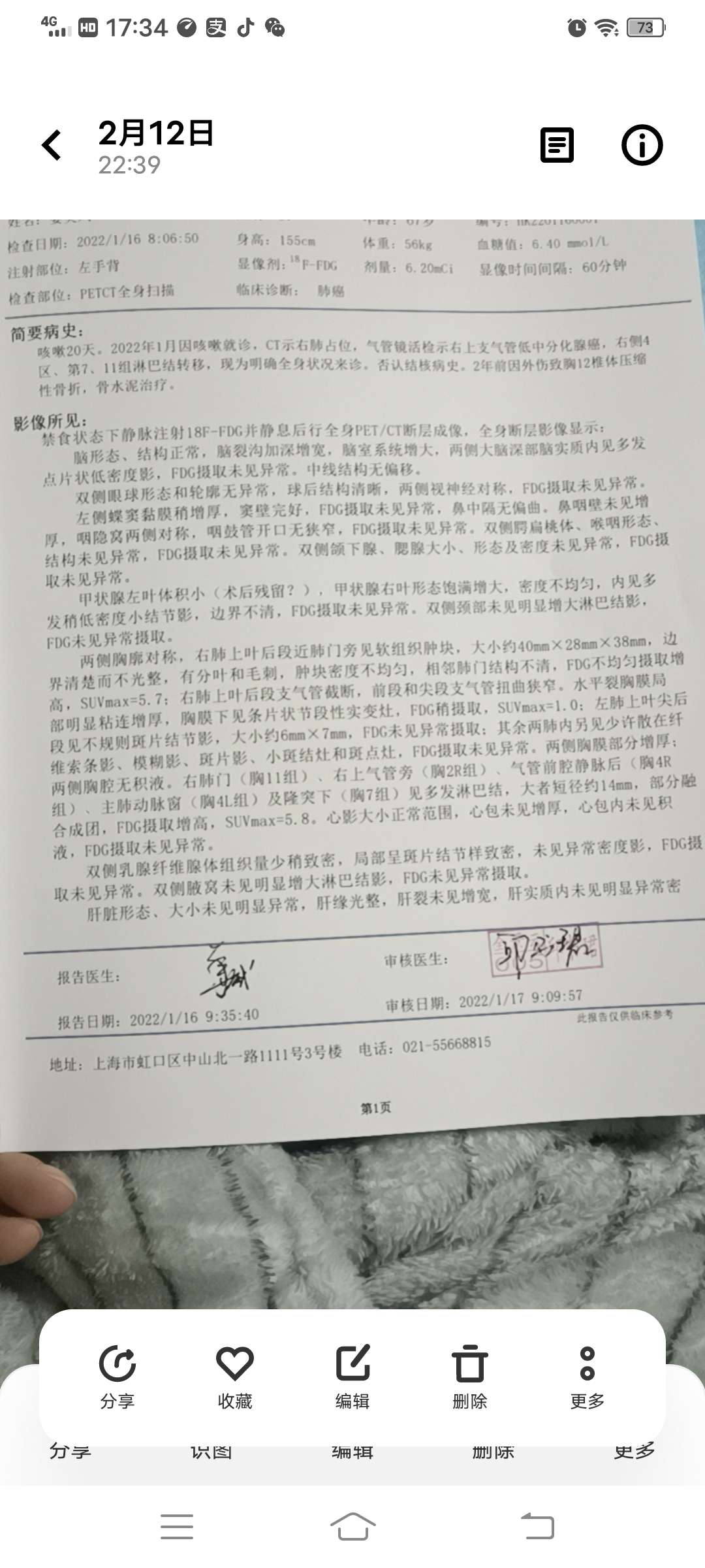 从3月19我知道得了肺鳞癌,一直跟我说是中期给我希望,今天才拿到
