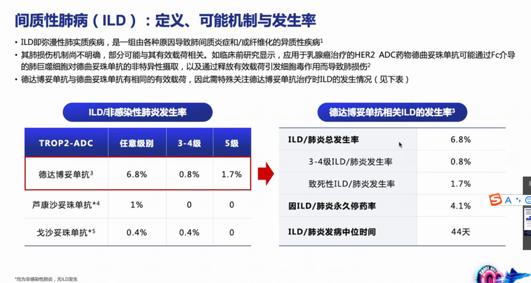 虽然发生率低于德曲妥珠单抗或恩美曲妥珠单抗,但仍有报告。表现为干咳、活动后气短、发热。若出现不明原因呼吸道症状,需立即停用并排查。