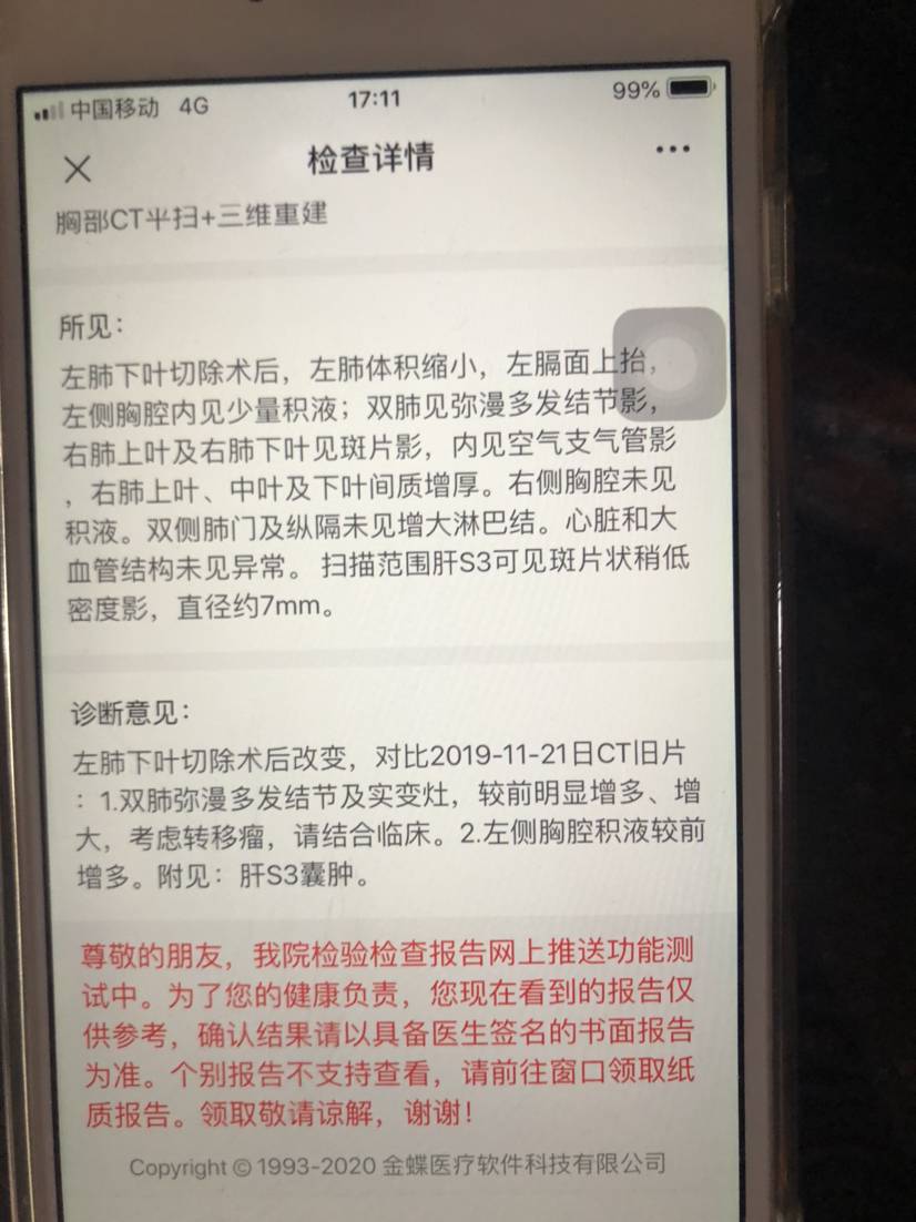 点赞(1) 举报CT结果如下,请问农夫叔,可以直接上靶向吗?ROS1融合