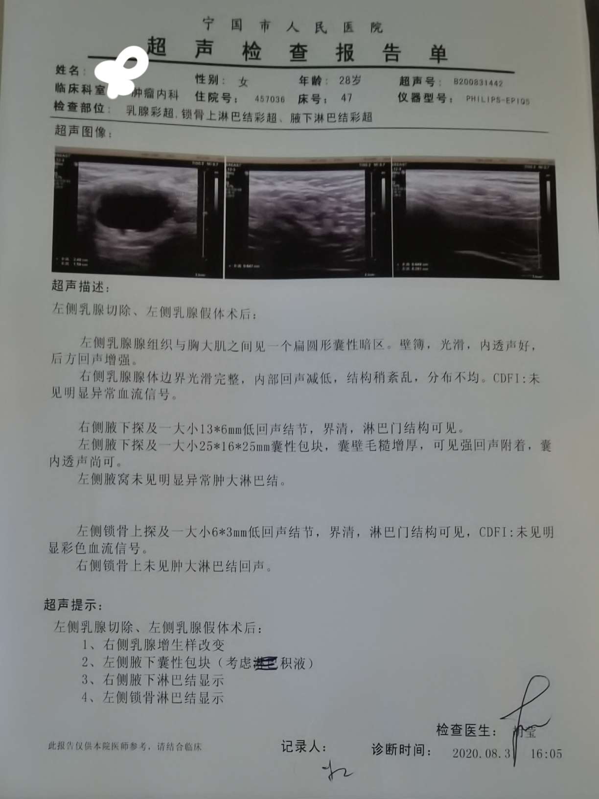 英俊的书签8707我是颈部两侧都1..4,腋窝两侧1.0
