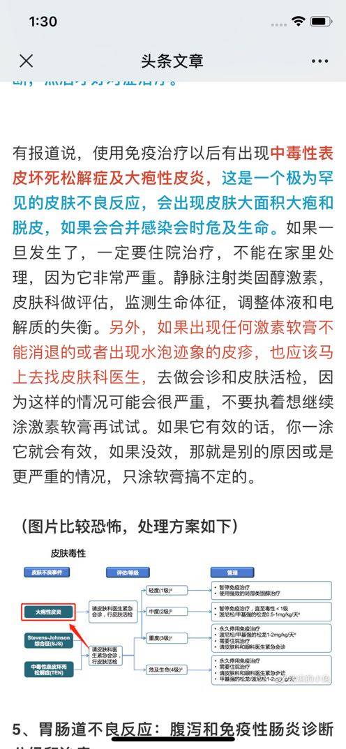请教群友里有没有单独做免疫治疗效果非常好的晚癌患者,我爸爸治疗了8个月后,肿瘤已经变得很小了,但这几周出现严重皮肤病!父亲非常痒,好心疼!一个k药项目组的医生建议停k药!