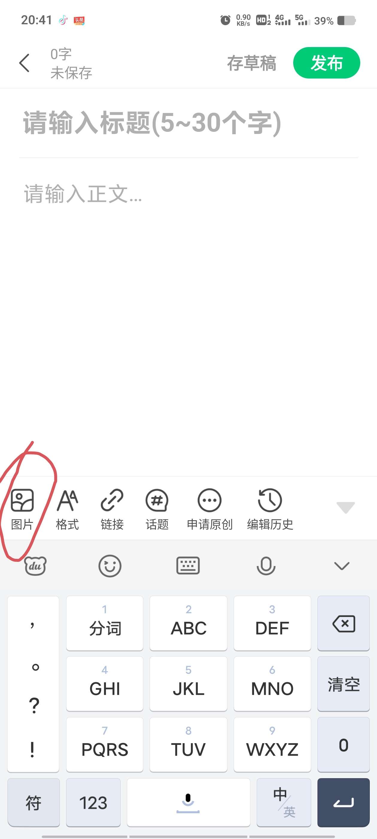 你正文左下角有图片,点一下进去你要那个图片,视频也可以。
