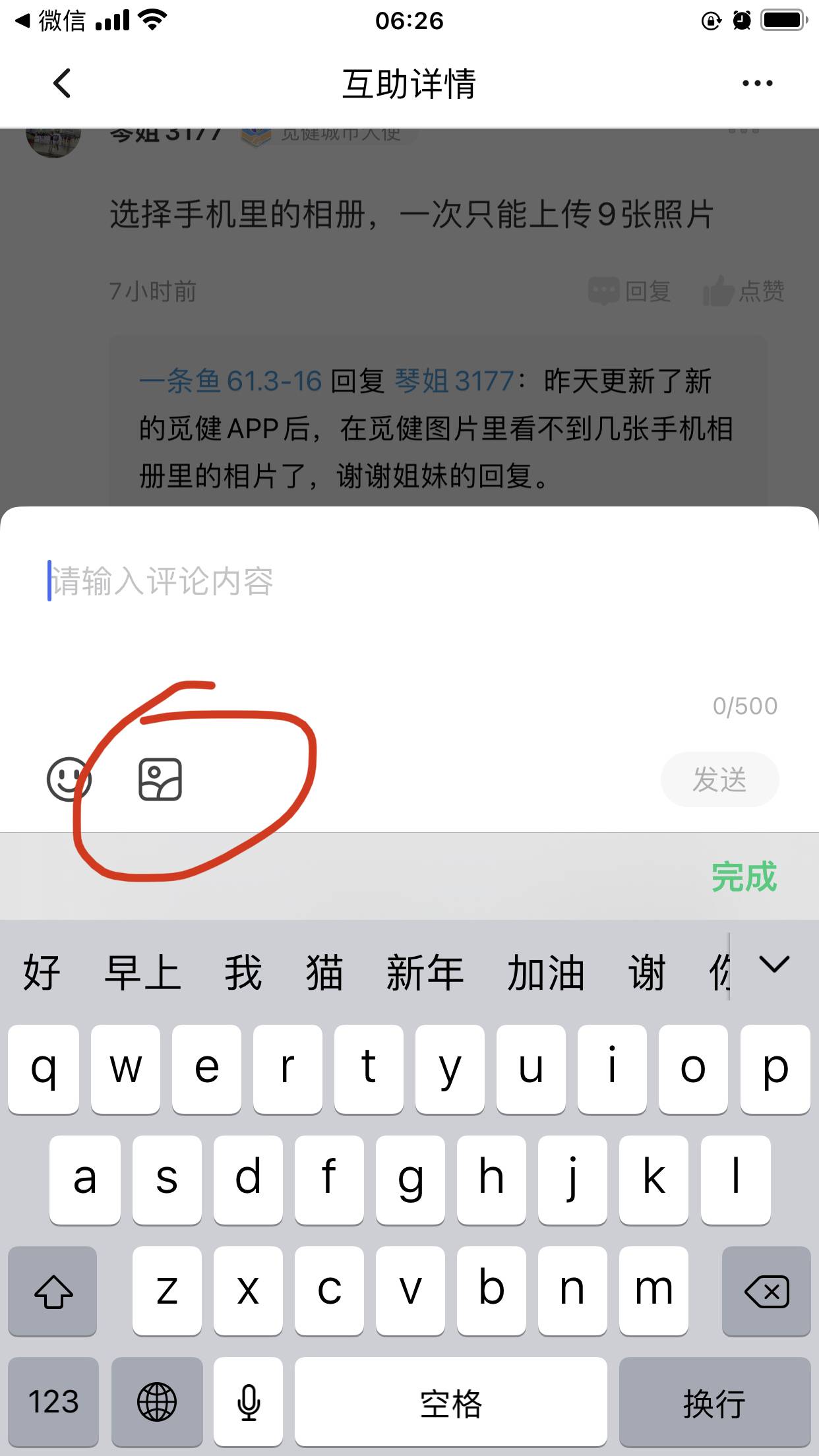 和微信上传图片差不多,点击看到“图片”标识,点击进入选择你需要的图片。