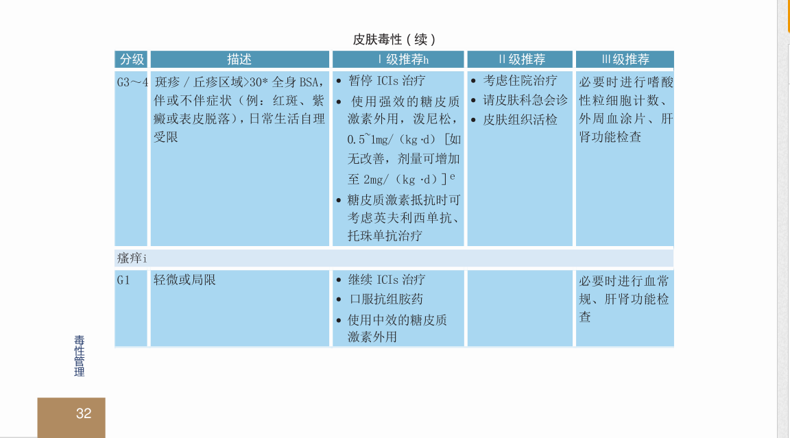 点赞(0) 举报免疫相关的皮疹是按照症状和体表面积占比来分等级的,1-2-3-4级,从轻到重,应对的办法也是按照这个等级来的。