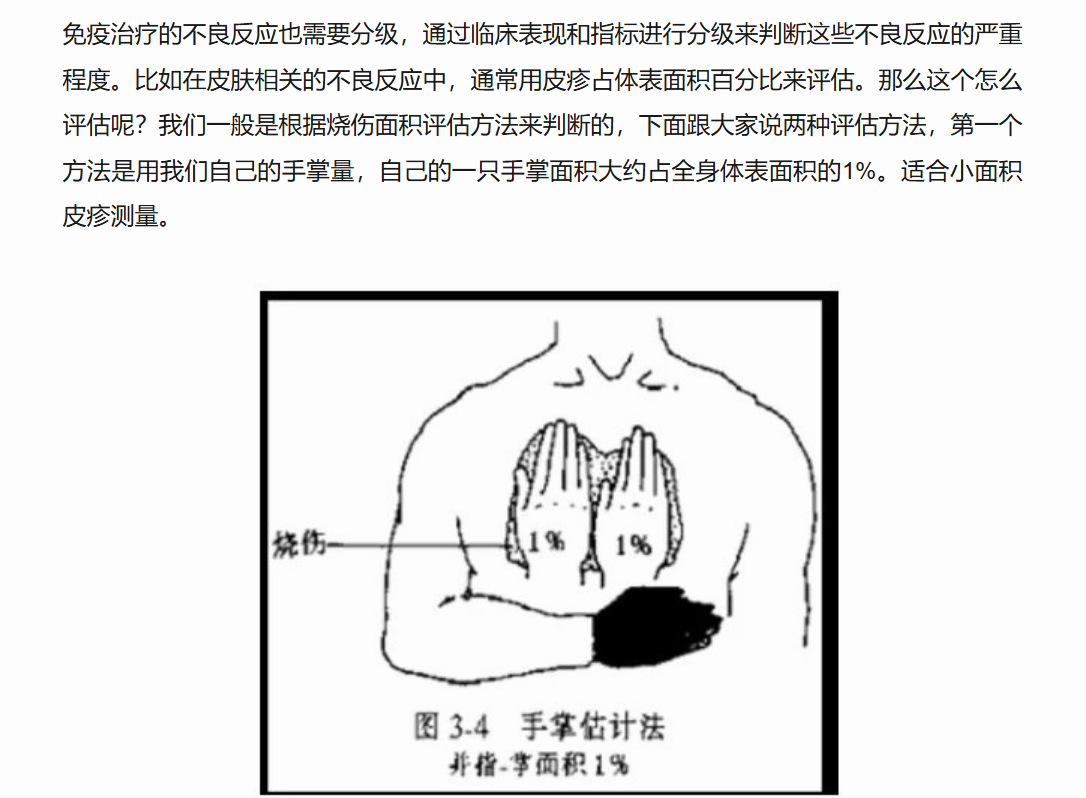 点赞(0) 举报如果有兴趣,可以参照下面的方法,自己评估一下体表皮疹面积和副作用等级是几级。