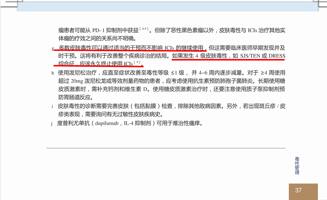 · 前提:这次出现的副作用虽然严重,但已经完全恢复,并且不属于危及生命的类型(如3-4级肺炎、心肌炎、肝炎等)。如果只是严重的皮疹或通过激素能完全控制的结肠炎/肝炎,在副作用消退后,医生可能会考虑恢复原方案治疗。
