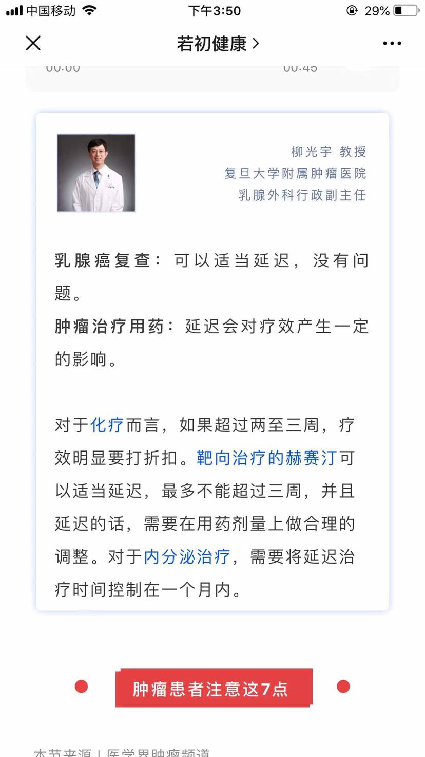 复查日期到了,年前就预约医生了,因为疫情没法去医院这也算了,内分泌治疗每月需要打针吃药怎么办啊,还不是得硬着头皮去医院